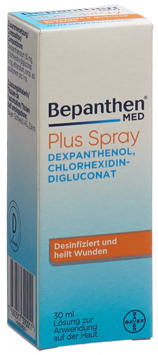 Бепантен МЕД Плюс – бесцветное дезинфицирующее и ранозаживляющее средство. Он предотвращает и подавляет инфекции в поверхностных ранах и способствует заживлению. Бепантен МЕД Плюс доступен в виде крема или спрея. Бепантен МЕД Плюс содержит активный ингредиент хлоргексидин, который борется с бактериями, присутствующими на коже или попавшими в рану через грязь. Это может предотвратить или сдержать инфицирование раны. Бепантен МЕД Плюс также содержит активный ингредиент декспантенол. Этот активный ингредиент превращается в коже в витамин пантотеновую кислоту и поддерживает образование и регенерацию клеток кожи изнутри. Формирование новой кожной ткани ускоряется, и рана заживает быстрее. Повышается также эластичность новообразованной кожной ткани. Бепантен МЕД Плюс облегчает боль благодаря своему охлаждающему эффекту. Крем легко наносится и смывается; он нежирный и нелипкий. Спрей можно наносить, не касаясь раны и почти не жаля. Используйте Бепантен МЕД Плюс при всех типах небольших ран с риском инфицирования, таких как ссадины, небольшие порезы и царапины, потрескавшаяся кожа, небольшие ожоги и язвочки; при инфицированных воспалениях кожи; для лечения воспаленных сосков во время кормления грудью; только по назначению врача при хронических ранах, таких как язвы на ногах (ulcus cruris), пролежни (пролежни) и хирургические раны.