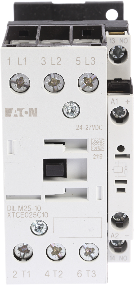 Контактор управления двигателем Eaton, 3-полюсный, 3 НО, 25 А, 11 кВт, катушка 24 В постоянного тока