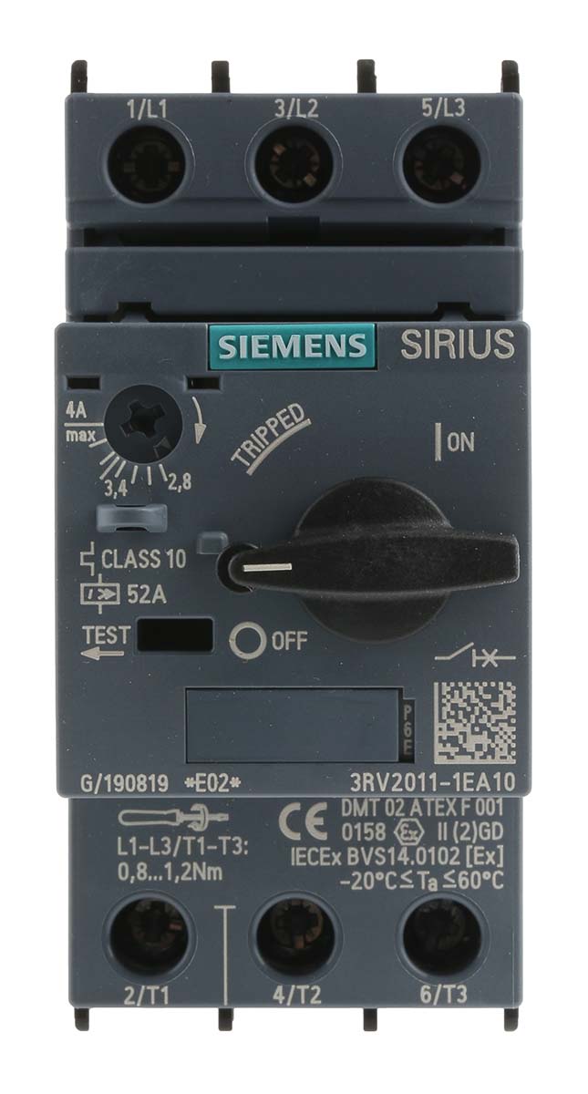 Автоматический выключатель Siemens, 690 В, 2,8 → 4 А SIRIUS 3RV