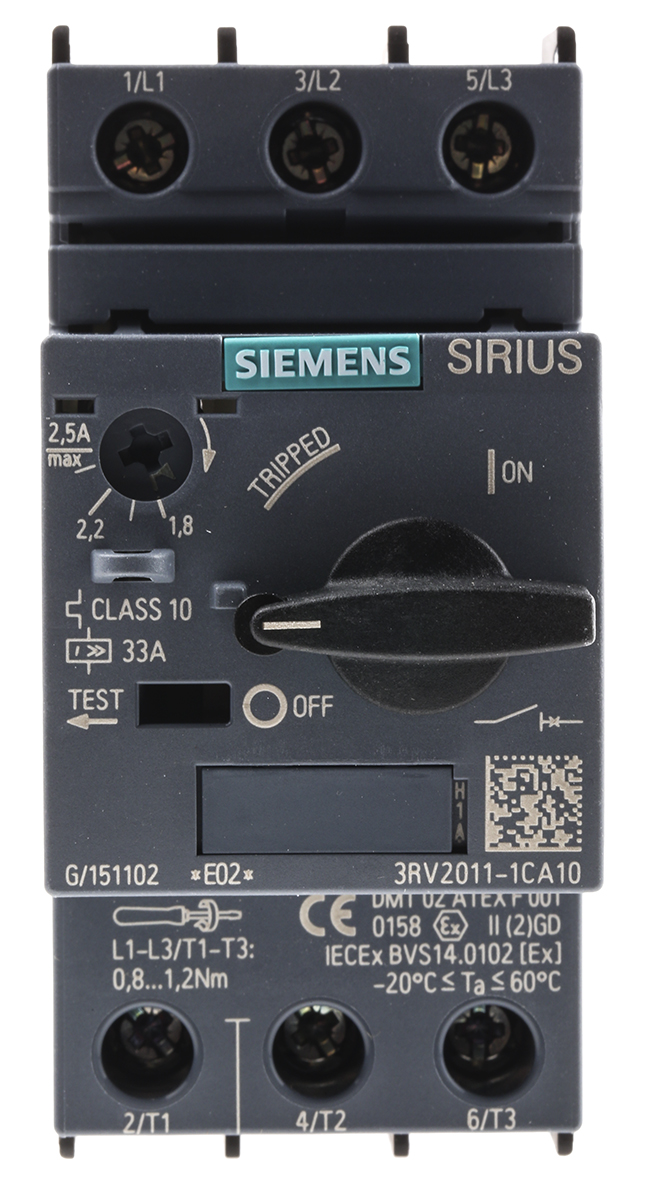 Автоматический выключатель Siemens, защита S00, 690 В, 1,8 → 2,5 А SIRIUS 3RV