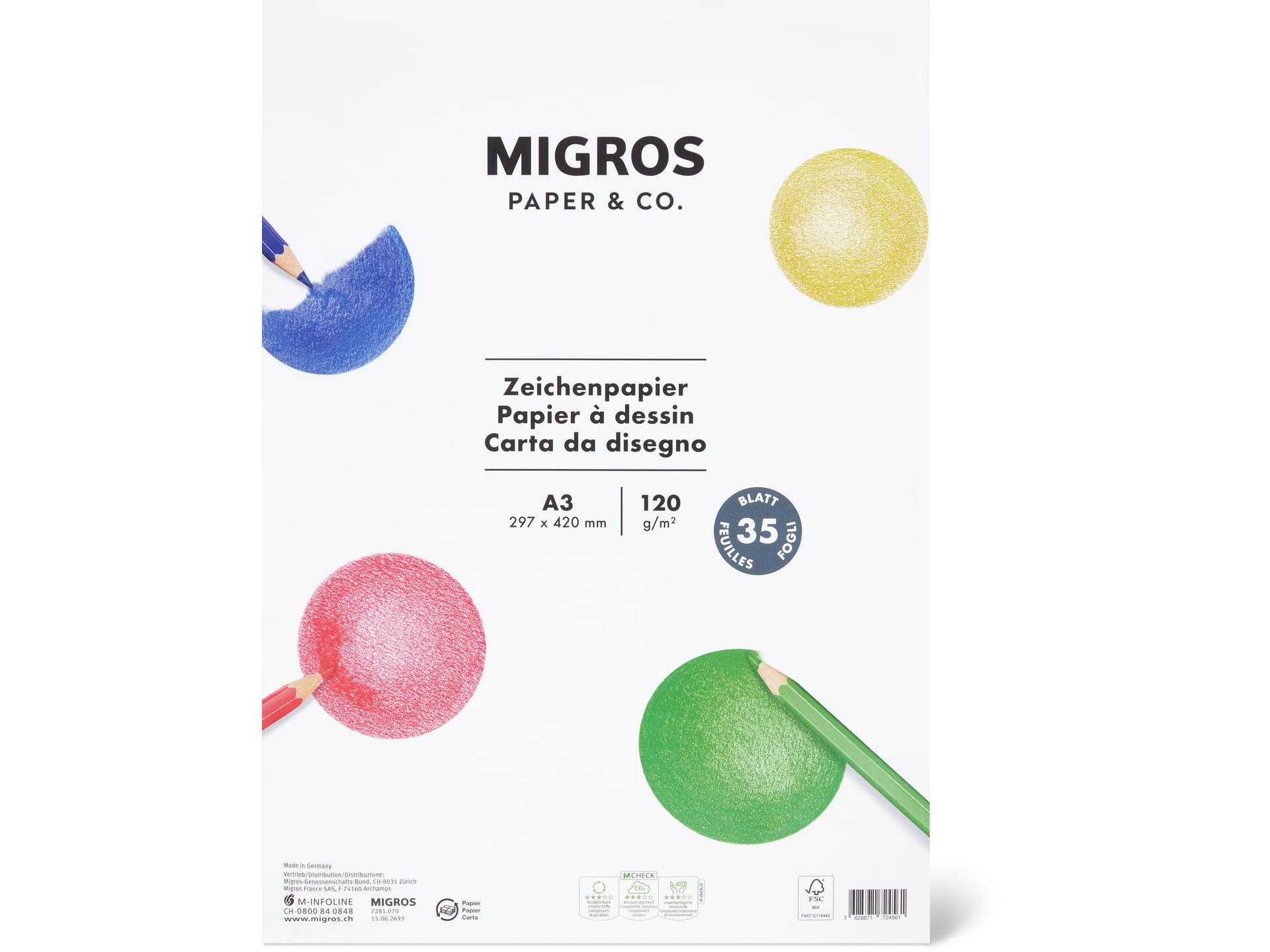 Migros Paper & Co. · Бумага для рисования · A3, 297 x 420 мм, 120 г/м²