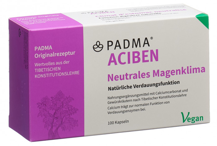 ПАДМА АЦИБЕН — это пищевая добавка с карбонатом кальция и ароматическими травами в соответствии с тибетской теорией конституции для нейтрального климата желудка.