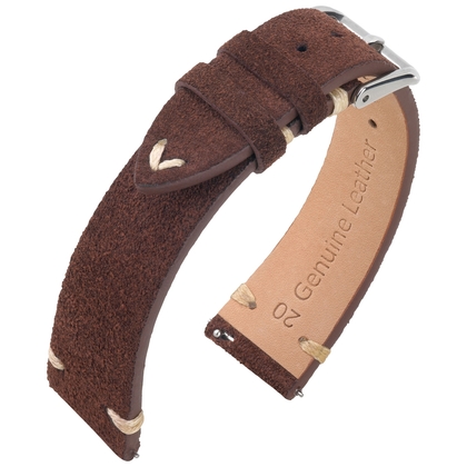 Замшевый ремешок для часов с V-образной строчкой от голландского бренда NATOS.com представляет собой ремешок для часов в винтажном стиле из телячьей кожи, обработанный вручную, вдохновленный тенденцией к натуральной отделке и ремешкам для часов собственного изготовления.