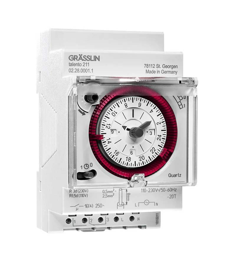 Таймер Grasslin на DIN-рейку, 110 → 230 В переменного тока, 1 канал, часы