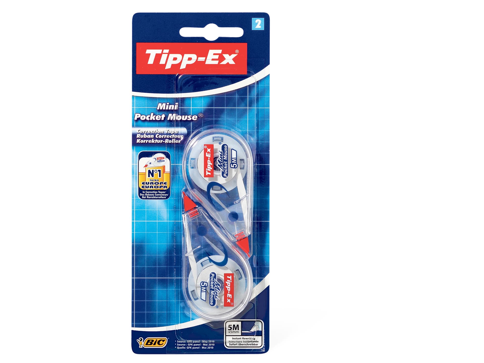 Миниатюрная карманная мышь Tipp-Ex · Корректирующий ролик · 6 мм, прочный полиэстеровый ремешок, 2 x 5 м